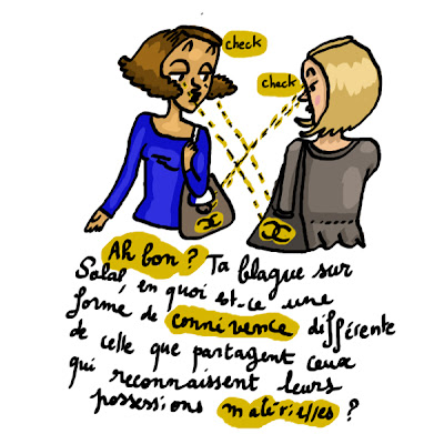 J'aime bien l'image de Janine retenant sa jupe lorsqu'elle est la tête en bas. ------------------- Typiquement, les hipsters revendiquent des choix uniques et individualistes (l'un sera habillé avec veston et monocle, un autre avec chemise de bûcheron et jean's, etc.)... tout en adoptant des codes bien communs (généralement une longue barbe, ou au minimum des moustaches élégantes) et en fréquentant les mêmes lieux. Bref, tous différents... mais bien communs dans leur différence étudiée. Mais ils font bien ce qu'ils veulent ! C'est juste énervant pour ceux qui envisagent de se laisser pousser la barbe et qui savent qu'ils seront pris soit pour des islamistes soit pour des hipsters. ------------------------------ @ DM : Le cas que vous citez est totalement différent, car ce ne sont pas ceux qui reprochent à Sarko sa prononciation qui sont ostentatoires ! C'est Sarkozy qui : - soit a voulu frimer en parlant de Barthes, et a montré à quel point c'était une frime grossière puisqu'il ne sait pas comment se prononce son nom, - soit était obligé par sa fonction à citer le nom de Barthes dans un discours convenu, et a montré à quel point il est désinvolte et n'est absolument pas à la hauteur de sa fonction, puisqu'il n'a même pas eu le minimum de conscience professionnelle consistant à demander comment ça se prononce. Dans un cas comme dans l'autre, il est soit ridicule de fatuité, soit incompétent et pas sérieux. Ceux qui ont dénoncé cet épisode n'ont fait qu'appuyer là où ça fait mal (et n'ont pas cherché à étaler leur culture : le problème n'est pas de montrer qu'on connaît Barthes, le problème est de devoir supporter Sarkozy). ------------------------- Il reste une petite différence entre la richesse monétaire et la culture. C'est que la richesse n'est pas accessible à tous (il ne suffit pas de travailler : le raccourci est très discutable) alors que la culture est censée l'être. Cette différence, et la volonté de faciliter l'accès de tous à la culture, est même le principe fondateur (au moins dans l'intention officielle initiale) de l'école républicaine française. Par ailleurs, l'argent est une quantité finie : celui qui en prend davantage en enlève aux autres. La culture est une quantité infinie : celui qui la partage n'en perd rien ! Cette différence-là est considérable. OK pour dire que l'ostentation de l'une vaut l'ostentation de l'autre (encore faut-il disposer du contexte et ne pas confondre "ostentation" et "impulsion à partager le fruit de sa curiosité" : toute référence culturelle n'est pas forcément ostentatoire). Mais pas pour dire que les deux seraient équivalentes et dépendraient uniquement de l'héritage ou du travail. Leurs fonctions comme "outil de pouvoir" sont très différentes, leurs dynamiques (partage ou spoliation) sont très différentes.