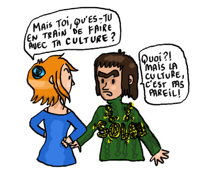Rah pas con le rapprochement oui. Mais bon jdois quand même avouer que dire que signes ostentatoire de richesse = signe ostentatoire de culture(dans une certaine mesures au moins) est assez difficile. Enfin bon, c'est vrai que trop étaler ça culture est aussi pathétique qu'étaler sa richesse.